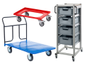 В Plastelo предложены следующие разновидности тележек на колесиках для перевозки грузов: