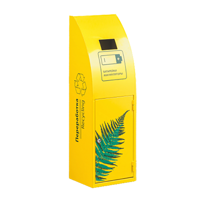 Контейнер для использованных батареек оснащен отдельной емкостью. Накопительный резервуар расположен в закрытом отсеке. Для удобства обслуживания и предотвращения несанкционированного доступа посторонних Конструкция оснащена дверцей, закрываемой на ключ.