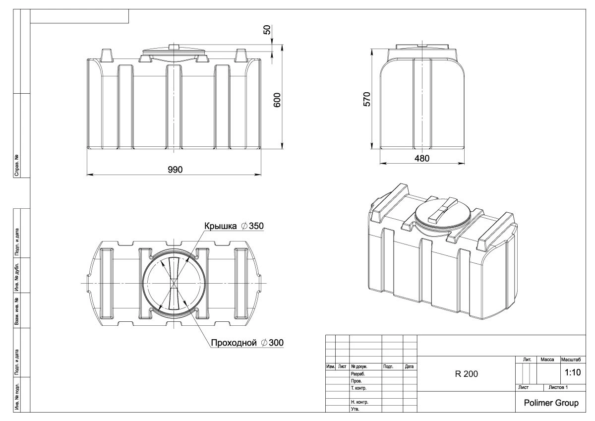 Емкость R 200 – это прямоугольный пластиковый бак объемом 200 литров, предназначенный для хранения питьевой воды, технических жидкостей, а также дизельного топлива.