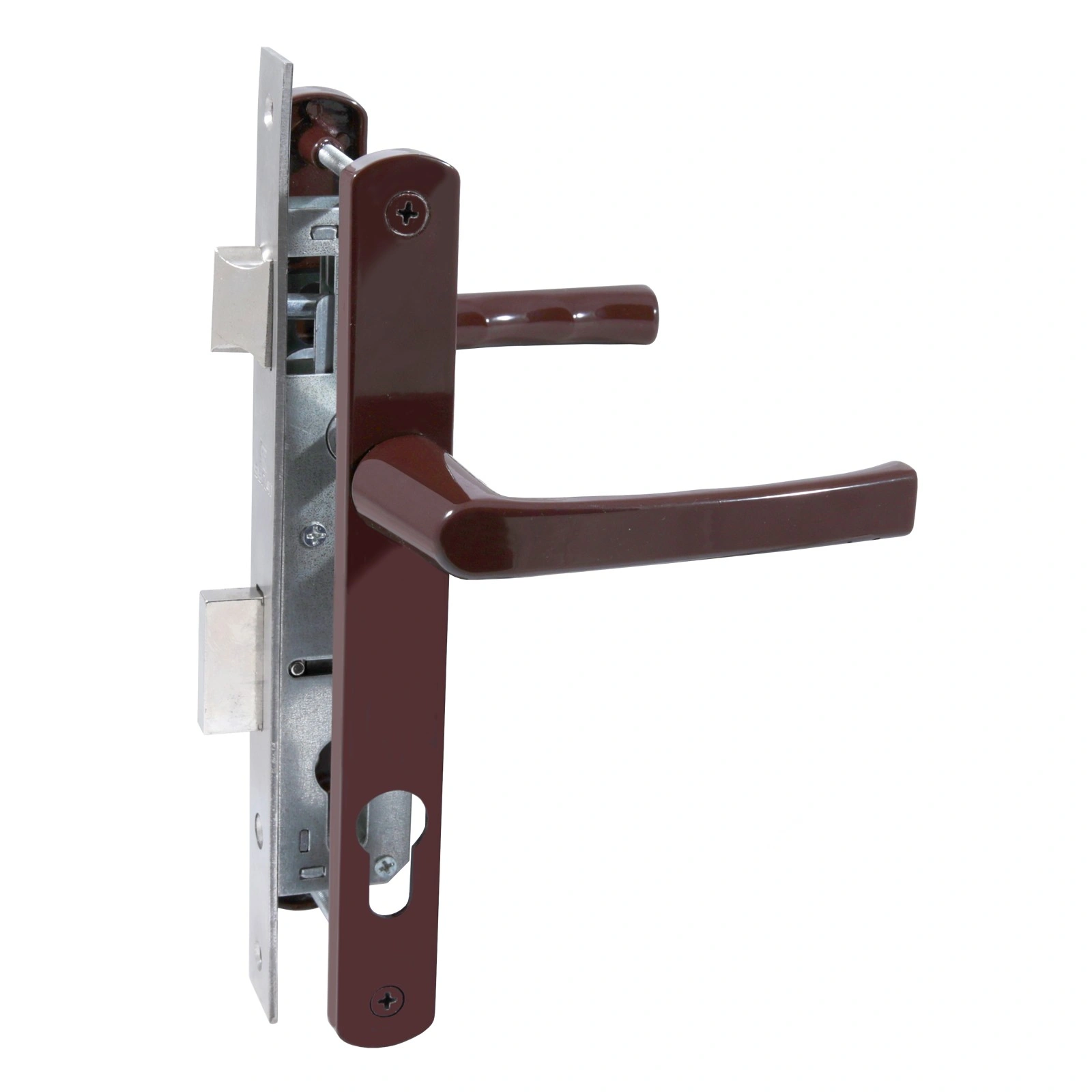 Комплектация: корпус замка, фалевые ручки, ответная планка, винтовые стяжки, саморезы. Цилиндровый механизм в комплект не входит. Сертифицирован в РФ. Гарантийный срок - 5 лет