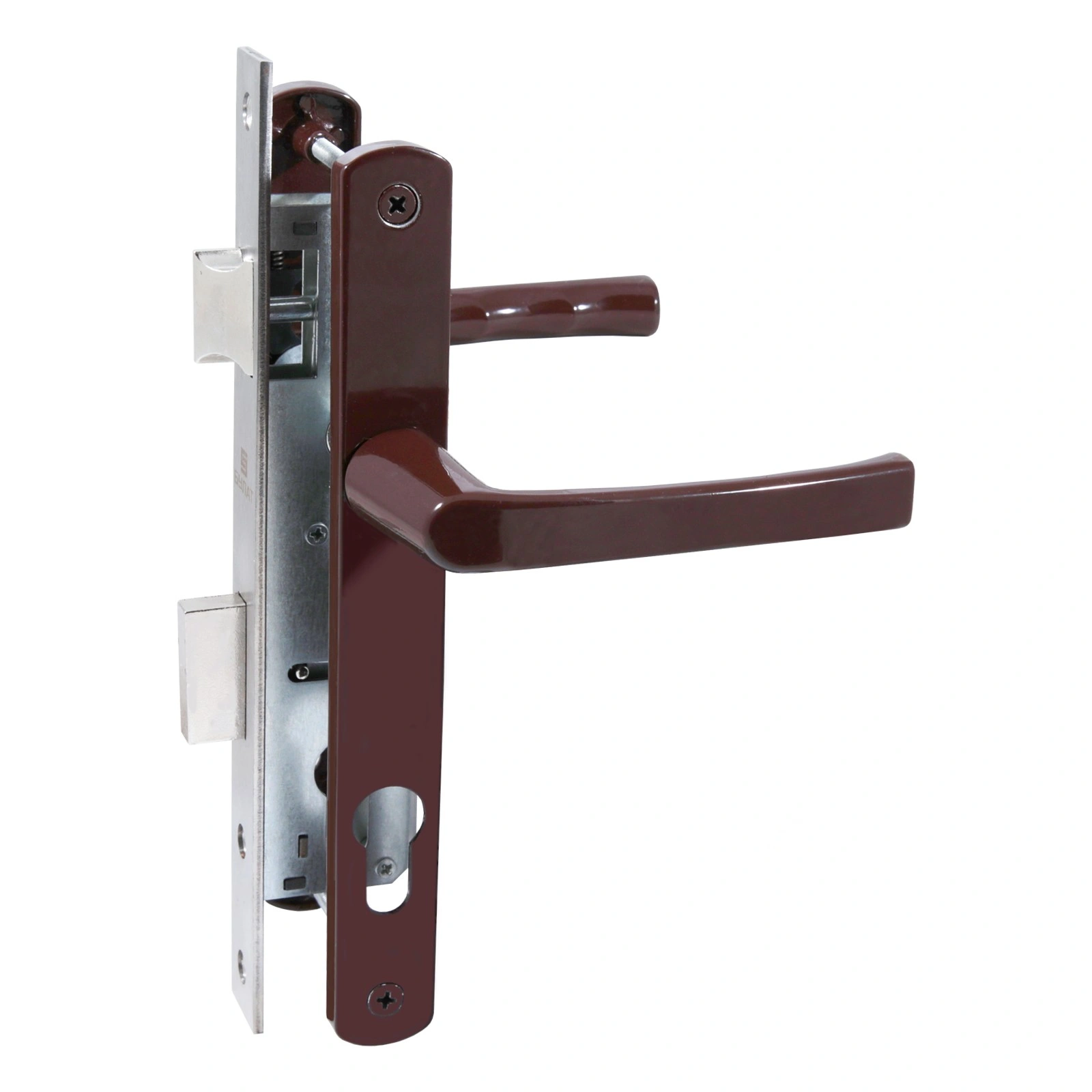Комплектация: корпус замка, фалевые ручки, ответная планка, винтовые стяжки, саморезы. Цилиндровый механизм в комплект не входит. Сертифицирован в РФ. Гарантийный срок - 5 лет