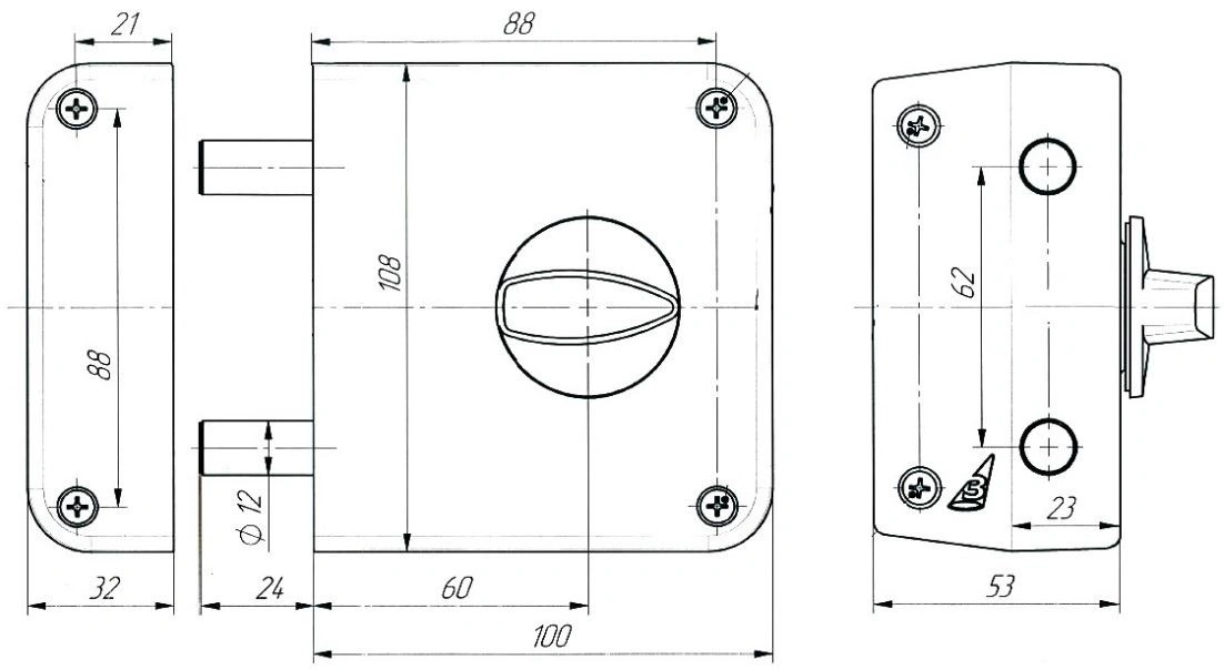 Оснащен двумя стальными ригелями. Цилиндровый механизм обеспечивает повышенную секретность.