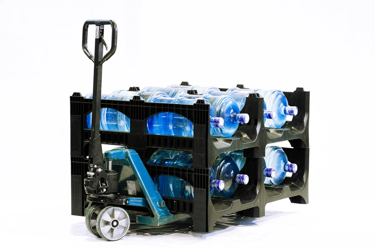Штабелирование поддонов для бутылей 19 литров
