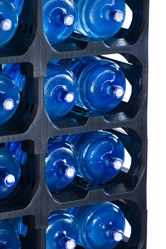 Cовременное решение для производства, транспортировки, хранения и дистрибуции 19-и литровой бутилированной воды. Конструкция паллета для бутилированной воды обеспечивает возможность ее захвата вилочным погрузчиком с четырех сторон или по двум коротким сторонам. Автоматизация всего процесса логистики бутылей на предприятии. Существенная экономия площади на складе - на 1,2 кв. метре склада можно разместить 96 бутылей с водой. Пластик, из которого изготовлен поддон, по своим свойствам значительно прочнее алюминия. Он отлично смягчает удары бутылок, не допуская повреждений при перевозке. Срок службы бутыли увеличивается в разы.