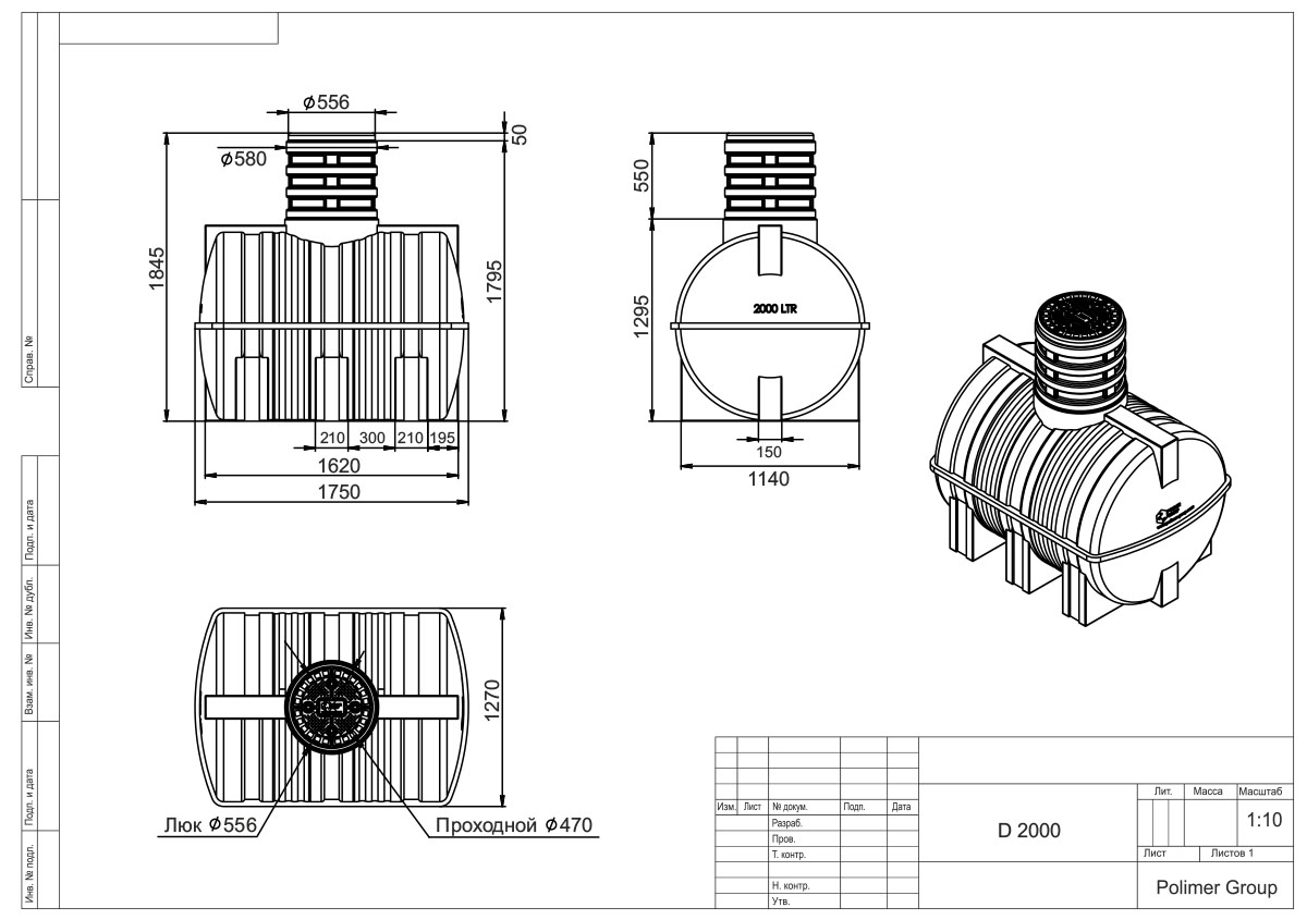 Ёмкость выполнена из прочного пластика, стойкого к воздействию агрессивных веществ и перепадам температуры, что делает её подходящей для подземной установки в любых климатических условиях.