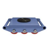 Большая площадь опоры исключает повреждение поверхности пола. Прочная рама не подвержена деформациям. Механизм поворота позволяет легко разворачивать на 360 градусов любой груз. Максимальная грузоподъемность модели — 15 т, количество роликов — 9 шт.