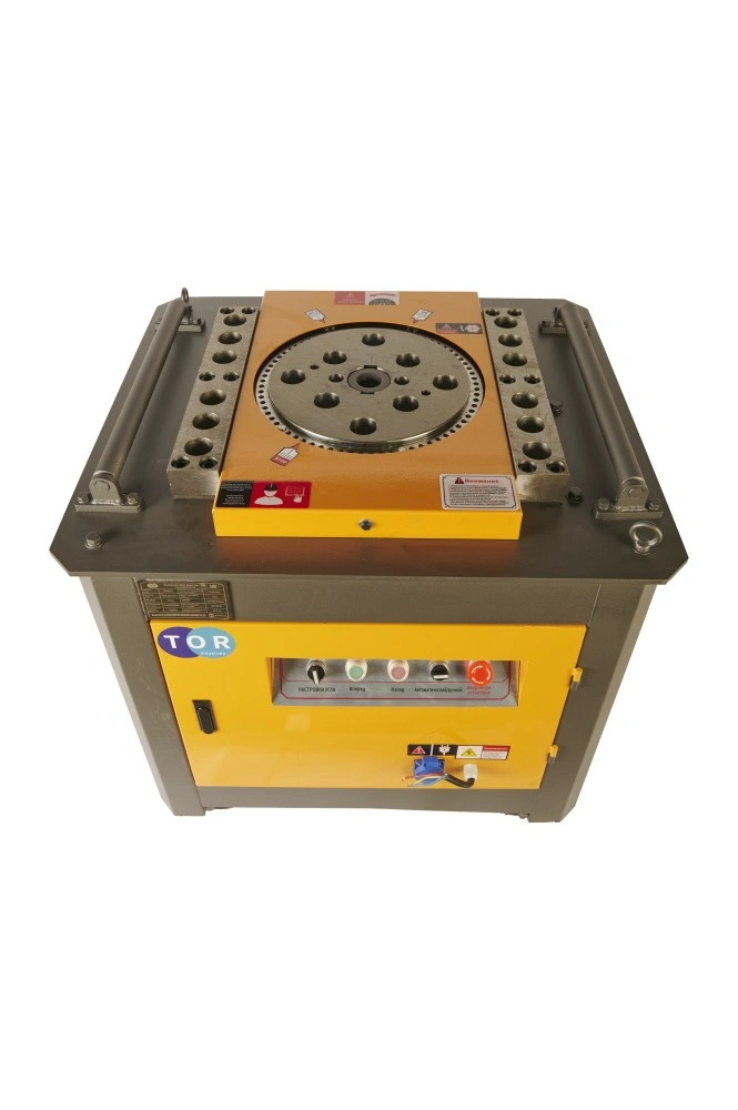 Станок для гибки арматуры TOR GW40A c доводчиком предназначен для выполнения точной гибки арматуры круглого и квадратного сечения. Оборудование обеспечивает формование заготовок заданной конфигурации с регулировкой углов и радиусов изгиба. Возможна работа как в ручном, так и в автоматическом режимах, что обеспечивает высокую производительность и качество обработки. ! Параметры изгиба задается при помощи концевых выключателей, что увеличивает производительность и снижает кол-во брака. ! Максимальный диаметр арматуры (ГОСТ 5781-82 и 10884-94) А1- 40мм, А3-32мм, А500С-28мм. ! В комплекте набор гибочной оснастки для круглой арматуры. Модельный ряд с доводчиками состоит из 3 станков для гибки арматуры диаметром до 32, 40 и 50мм (А1). Где использовать? Рекомендуется для работы при строительстве крупных объектов, на заводах ЖБИ, на металлообрабатывающих предприятиях. Особенности TOR GW40A: - Возможность настроить угол изгиба арматуры для автоматической работы. - Автоматический возврат план-шайбы и освобождение арматуры - увеличивают скорость работы. - Простая и надежная конструкция требует минимальное техническое обслуживание. - Прочный стальной каркас с дополнительными ребрами жесткости. - Набор гибочной оснастки в комплекте. - Ножная педаль для дополнительного удобства работы. - Двигатель мощностью 3кВт. - Работа от сети 380В 50гЦ. - Возможность использовать при температуре до -10° С. - Сниженное потребление электроэнергии при работе. - Оборудование оснащено стальными колесами и строповочными проушинами для удобства и безопасности при перемещении станка. - Высокое качество окраски.