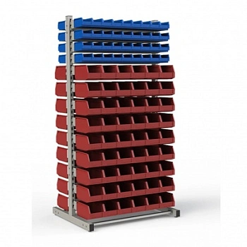 Стеллаж разработан специально для систематизации, хранения различных комплектующих, деталей, запчастей, крепежных и строительных материалов: болты, гайки, сверла, подшипники, метизы, фитинги, сантехника, зажимы, заклепки и т.д.