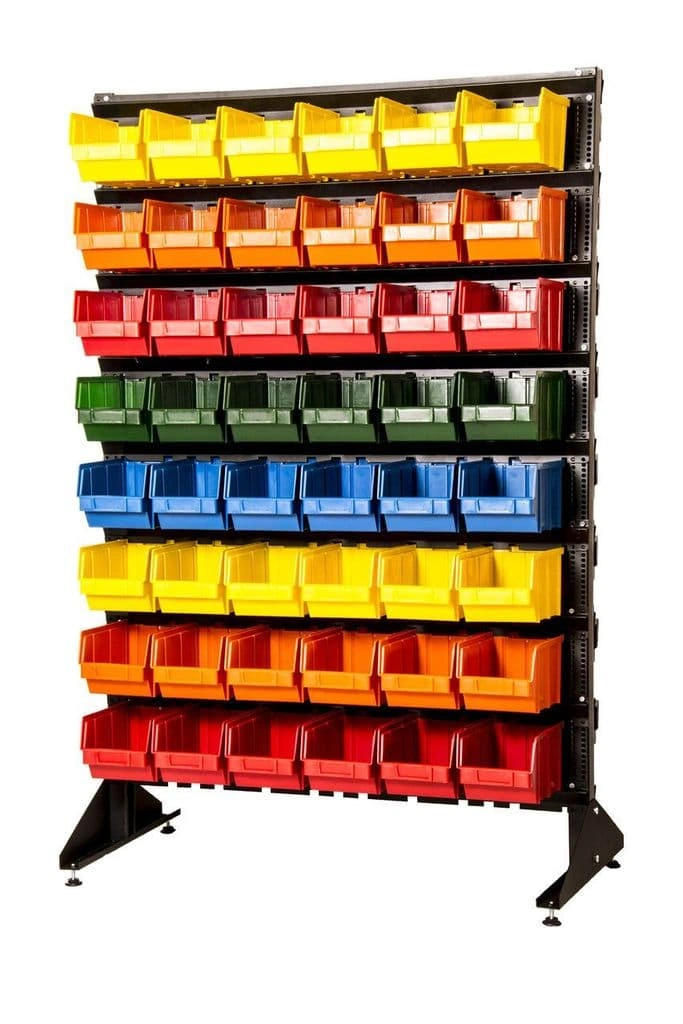 Стеллажи с ячейками упрощают работу с большим ассортиментом комплектующих и значительно сокращают время их поиска на складе или в магазине.