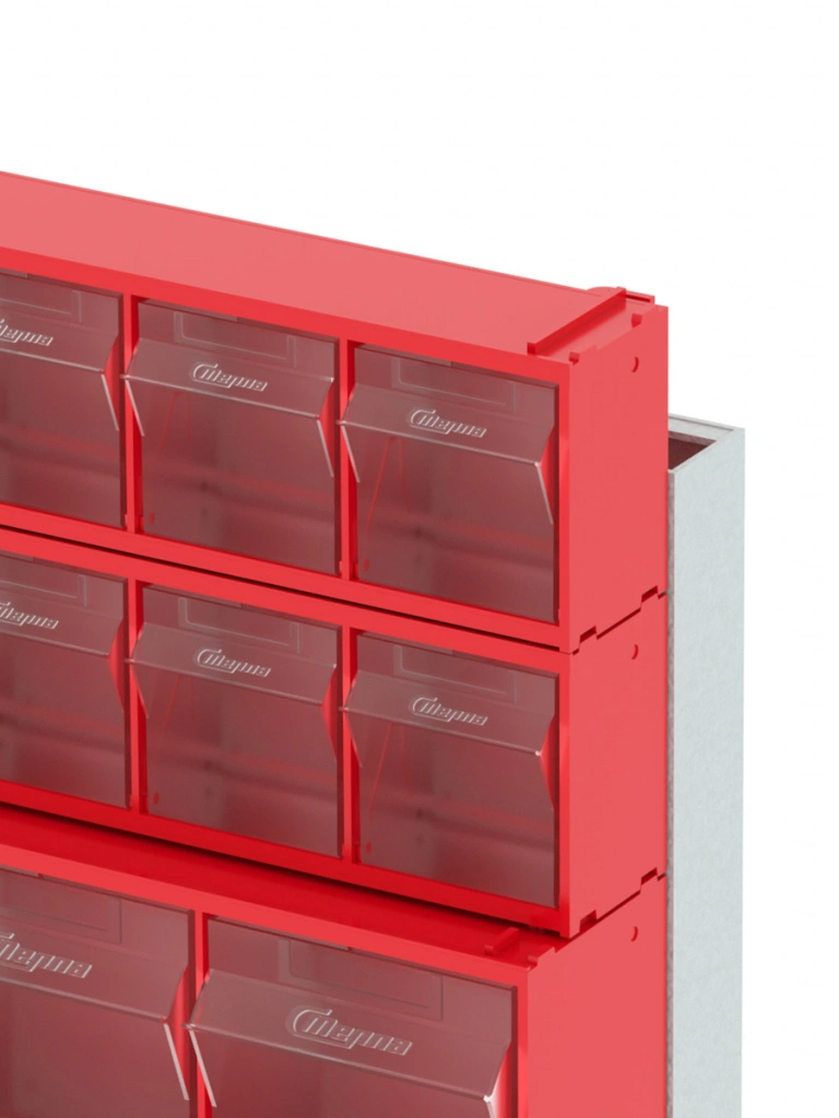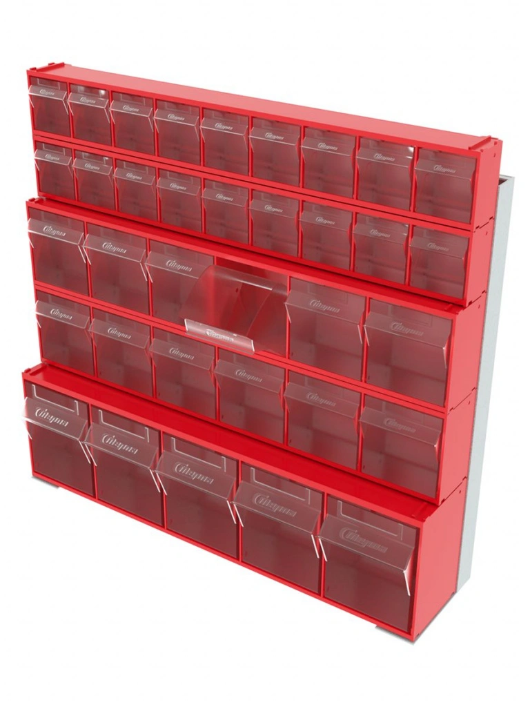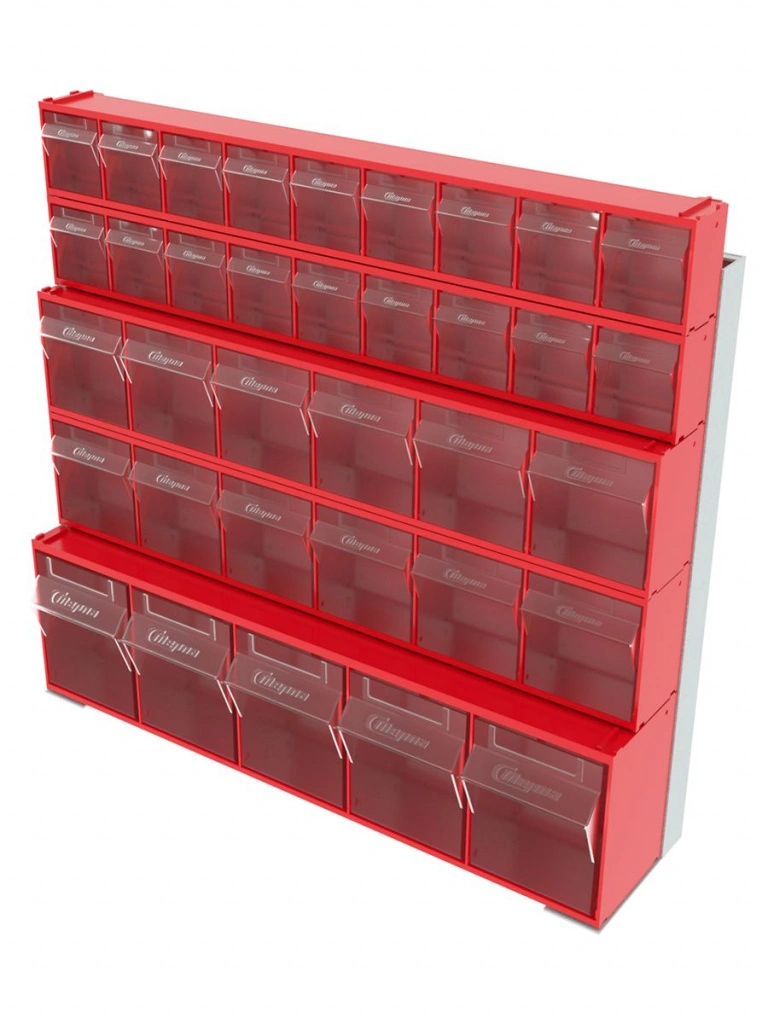 Стойка настенная/настольная Стелла-техник 401-02-02-01 (610х150х500) представляет собой удобную систему хранения, которая подойдет для выставочных залов, магазинов, офисов, складов. Основание можно установить на стол или закрепить на стену, привернув его анкерными болтами или саморезами (в комплект не входят). В комплект стойки входит: Рама FOX (610х150х500) V401 - 1 шт.; Короб откидной Стелла-техник F-600-9 , 600х68х78мм, 9 ячеек, красный, прозрачный -2 шт.; Короб откидной Стелла-техник F-600-6 , 600х96х112мм, 6 ячеек, красный, прозрачный – 2 шт.; Короб откидной Стелла-техник F-600-5 , 600х140х168мм, 5 ячеек, красный, прозрачный – 1 шт.; Упаковка. Преимущества стойки: Металлическое основание; Значительная устойчивость; Хорошая вместимость; Длительный срок службы.