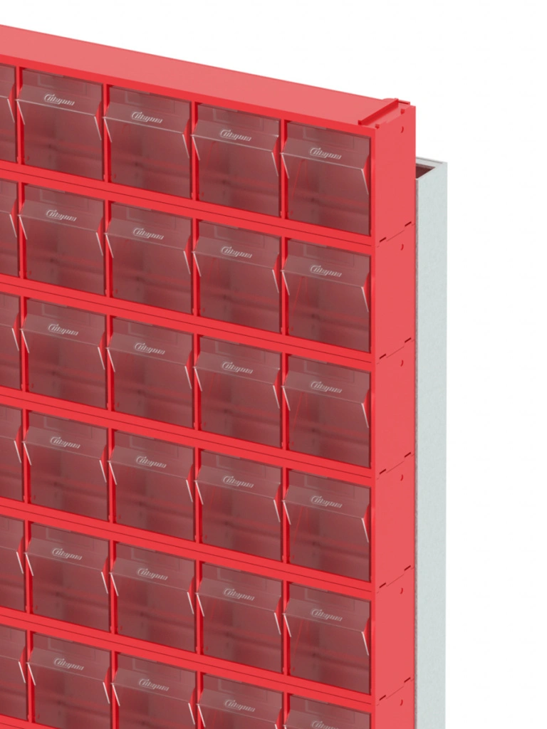 Стойка настенная/настольная Стелла-техник 401-07-00-00 (610х150х500) представляет собой удобную систему хранения, которая подойдет для выставочных залов, магазинов, офисов, складов. Основание можно установить на стол или закрепить на стену, привернув его анкерными болтами или саморезами (в комплект не входят). В комплект стойки входит: Рама FOX (610х150х500) V401 - 1 шт.; Короб откидной Стелла-техник F-600-9 , 600х68х78мм, 9 ячеек, красный, прозрачный - 7 шт.; Упаковка. Преимущества стойки: Металлическое основание; Значительная устойчивость; Хорошая вместимость; Длительный срок службы.