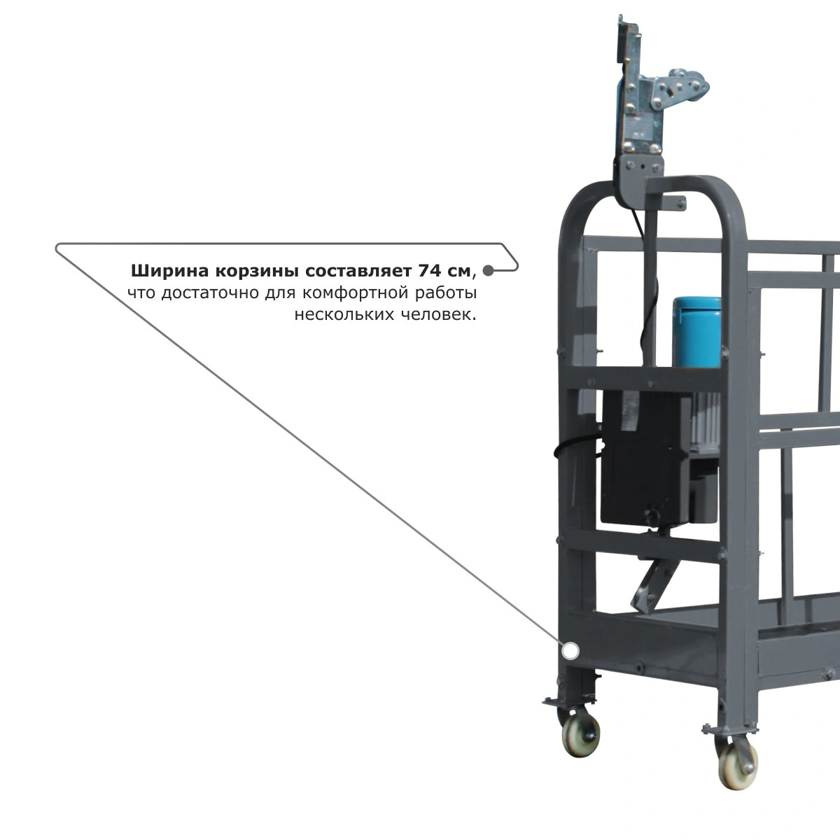 - Ширина корзины составляет 74 см, что достаточно для комфортной работы нескольких человек.
