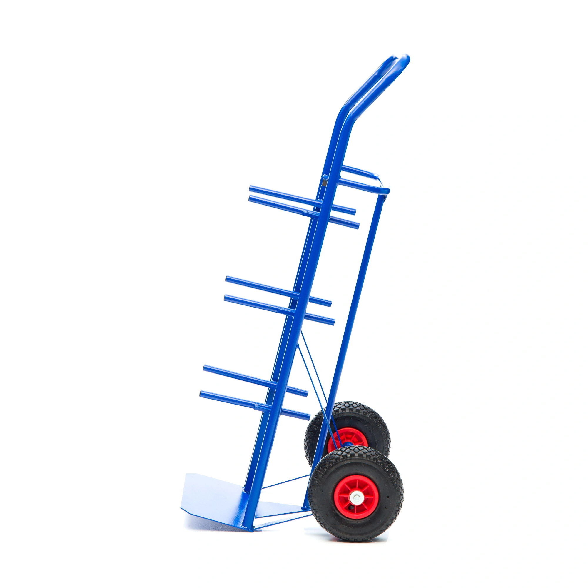 Тележка КДВ-55-пневмо-255 удобная модель для одновременной перевозки четырех баллонов (19 л.) с водой. На каркасе тележки установлены ряды перекладин и задняя планка для надежной фиксации бутылей параллельно земле (под небольшим наклоном). Баллоны кладутся друг на друга как на стеллаже, что позволяет вытаскивать каждый из них отдельно. Тележка КДВ-55-пневмо-255 упрощает доставку воды в офисы и на производства. Корпус модели из прочной нержавеющей стали. Покрытие полимерное. Цвет - синий. Тележка комплектуется: метизами для крепления, пневматическими колесами на полипропиленовом сердечнике с протекторной покрышкой, диаметром 255мм. Грузоподъемность до 200кг.