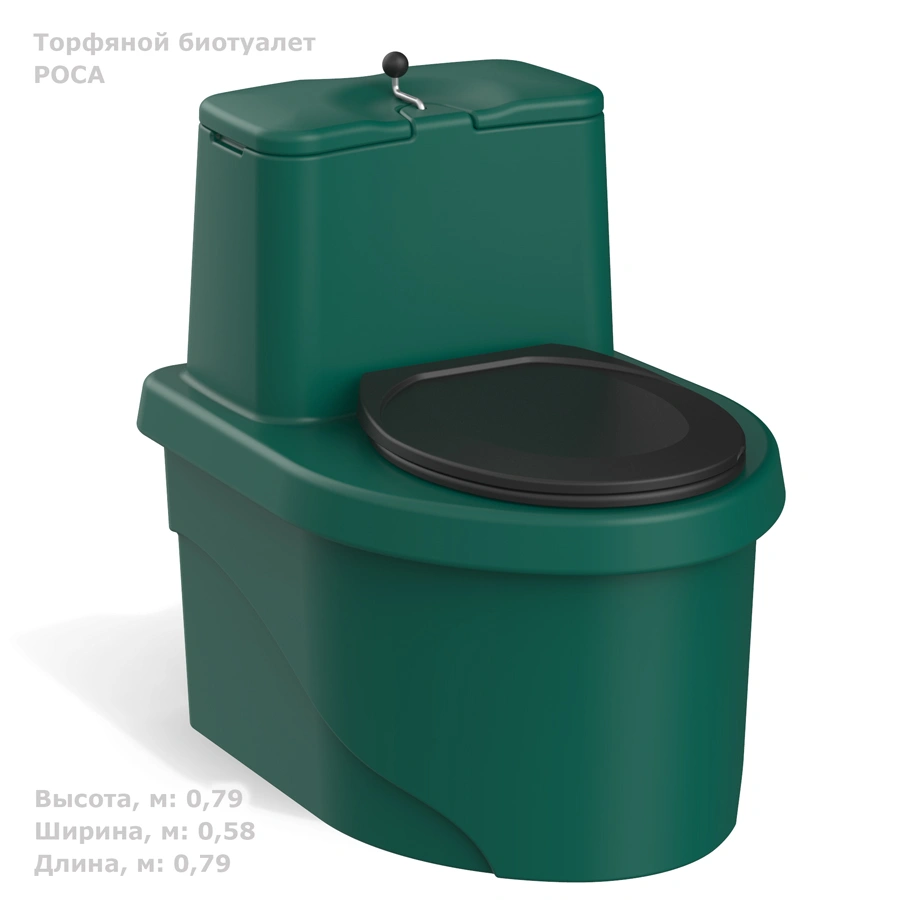Торфяной туалет РОСА зеленого цвета позволяет с удобством решать организацию туалета на загородном отдыхе. Рассчитан на регулярное использование. Для функционирования подключение электричества и воды не требуется.